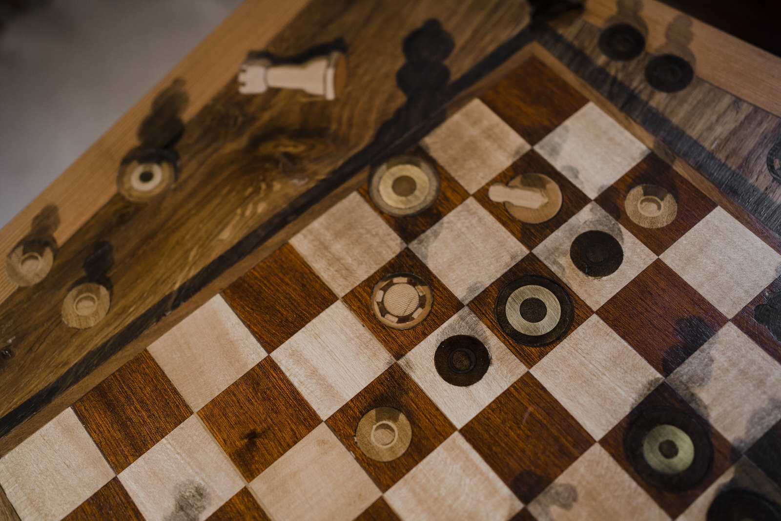 Ad oggi la mia creazione preferita è un tavolino da salotto intarsiato con finti libri,
